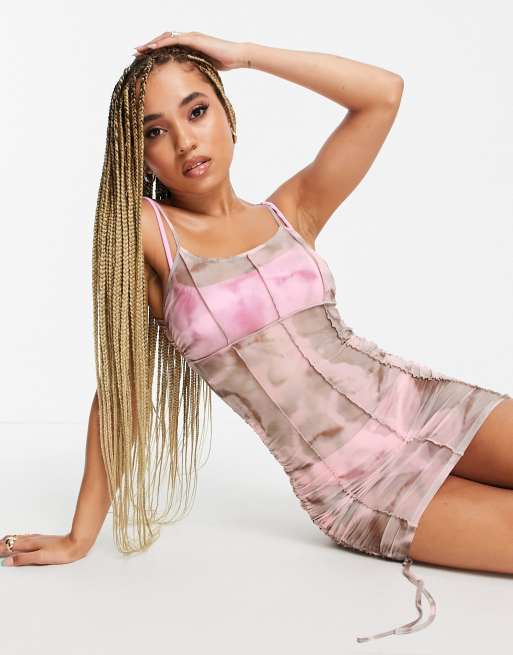ASOS DESIGN – Mini-Strandkleid aus Netzstoff mit Batikmuster und Kontrastnähten