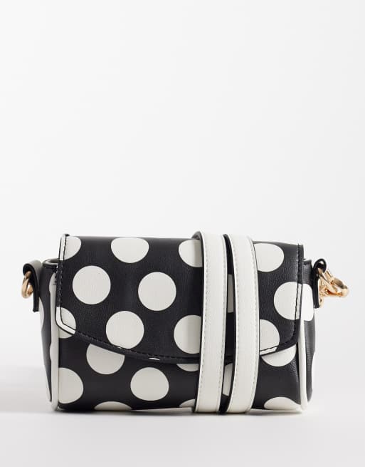 ASOS DESIGN – Mini-Umhängetasche mit verstellbarem Riemen und Polka Dots in Schwarz-Weiß