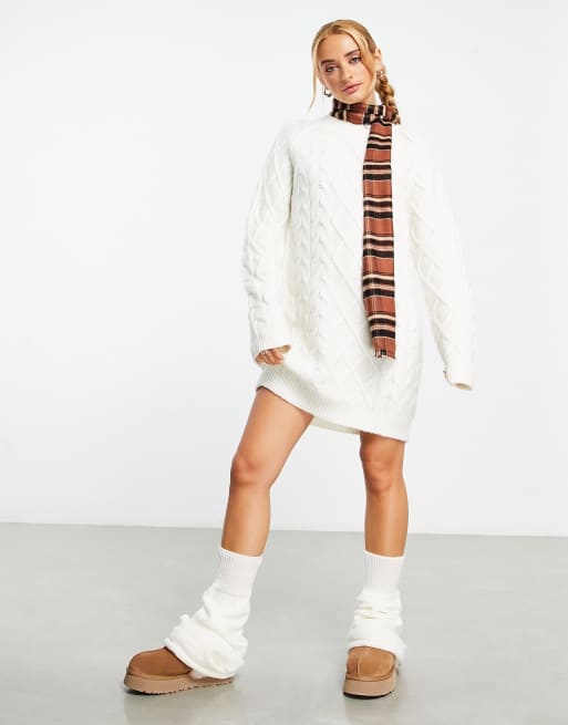 ASOS DESIGN – Minikleid in Creme mit Zopfmuster