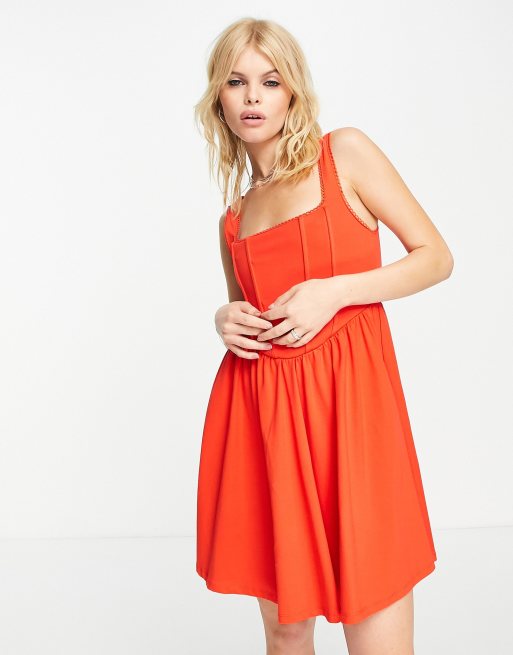 ASOS DESIGN – Minikleid in Rot mit Korsettdetail