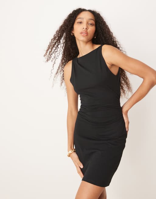 ASOS DESIGN – Minikleid in Schwarz mit U-Boot-Ausschnitt und gerafften Seiten