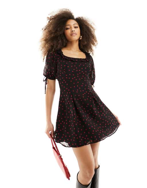 ASOS DESIGN – Minikleid mit Herzmuster und Rüschen