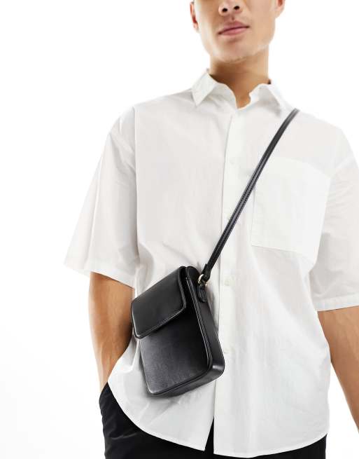 ASOS DESIGN – Minimalistische Pilotentasche aus schwarzem Kunstleder