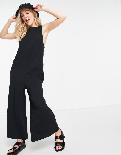 ASOS DESIGN – Minimalistischer, ärmelloser Jumpsuit in Schwarz