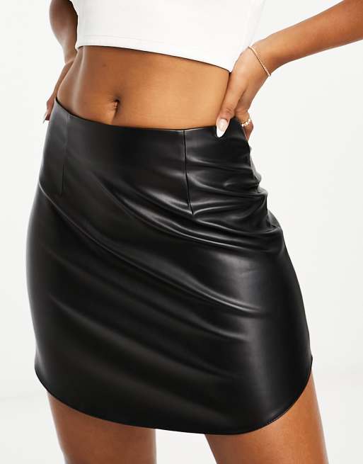 ASOS DESIGN – Minirock aus Kunstleder mit abgerundetem Saum in Schwarz