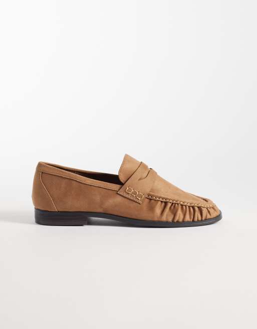 ASOS DESIGN – Minnie – Loafer aus hellbraunem Wildlederimitat mit Raffung