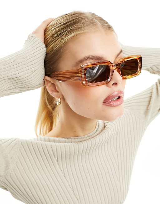 ASOS DESIGN – Mittelgroße, eckige Sonnenbrille in Braun mit polarisierten Gläsern