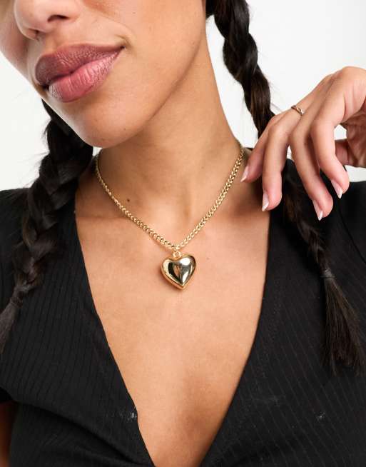 ASOS DESIGN – Mittellange, goldfarbene Halskette mit Anhänger mit plastischem Herz