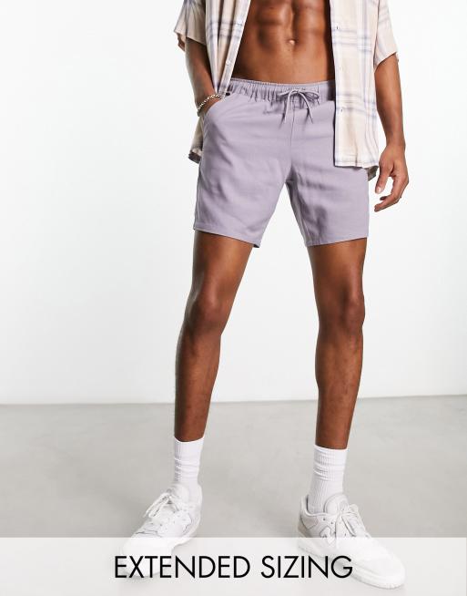 ASOS DESIGN – Mittellange Leinen-Shorts in Blau mit schmalem Schnitt