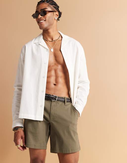 ASOS DESIGN – Mittellange Pull-on-Chinoshorts in Khaki