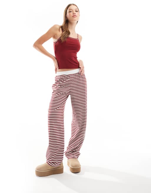 ASOS DESIGN – Mix and Match – Pyjama in Burgunder mit Streifen