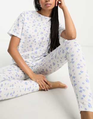 ASOS DESIGN – Mix and Match – Pyjama-T-Shirt in Weiß mit Blümchenmuster