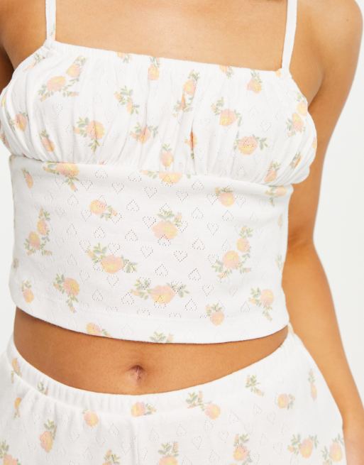 ASOS DESIGN – Mix & Match – Geblümtes Pyjama-Camisole in Weiß & Rosa mit Pointelle