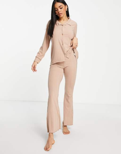 ASOS DESIGN – Mix & Match – Gerippte Lounge-Schlaghose in Braun