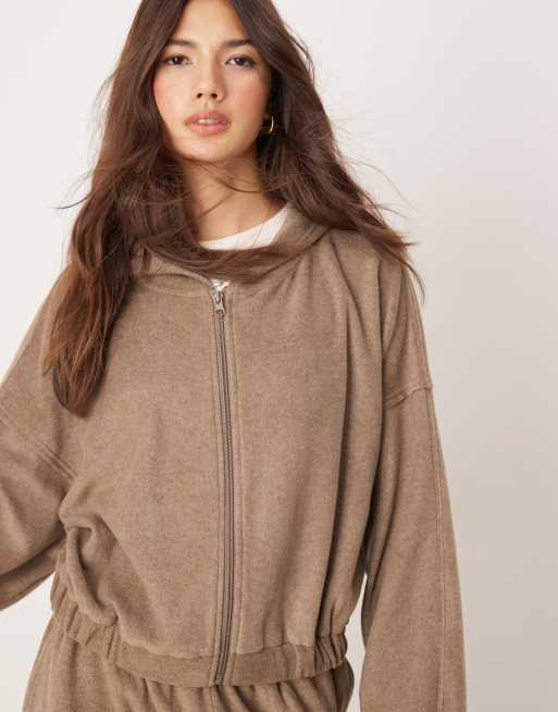 ASOS DESIGN – Mix & Match – Lounge-Kapuzenpullover aus Fleece in Braun