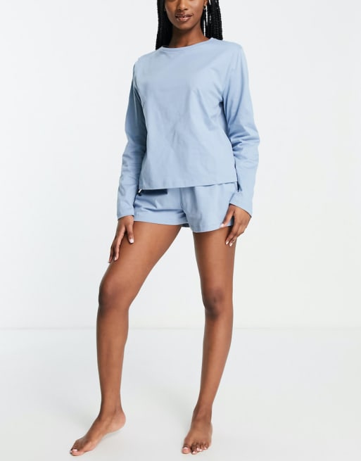 ASOS DESIGN – Mix & Match – Pyjama aus Bio-Baumwolle in Blau