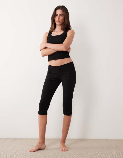ASOS DESIGN – Mix & Match – Pyjama-Caprihose in Schwarz mit Umschlag