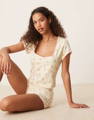 ASOS DESIGN – Mix & Match – Pyjama-Top in Blassgelb mit Blümchenmuster und Milkmaid-Ausschnitt