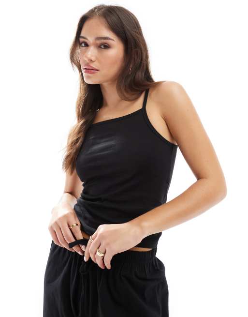 ASOS DESIGN – Mix & Match – Pyjama-Trägertop in Schwarz aus Baumwolle