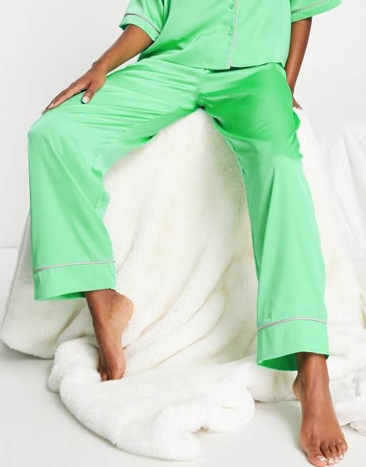 ASOS DESIGN – Mix & Match – Satin-Pyjamahose in Grün mit kontrastierender Paspelierung