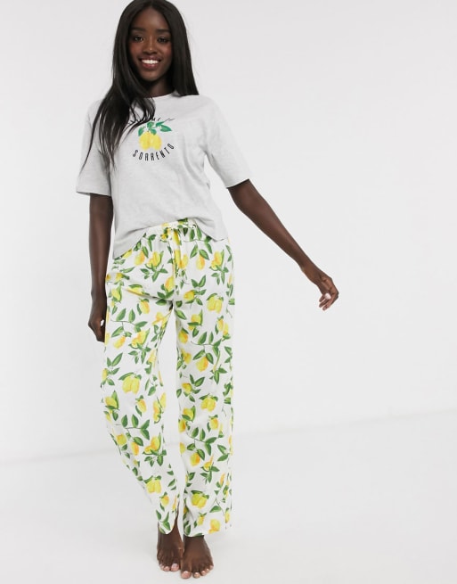 ASOS DESIGN – Mix & Match – Take Me To Sorrento – Jersey-T-Shirt und Hose mit Zitronenmuster