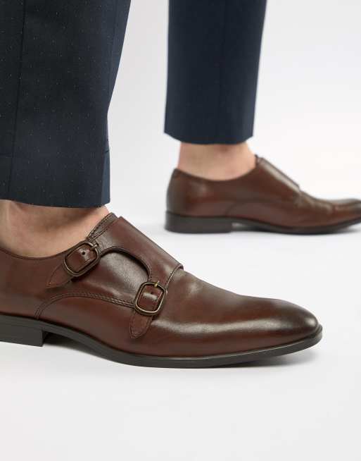 ASOS DESIGN – Monkschuhe aus braunem Leder