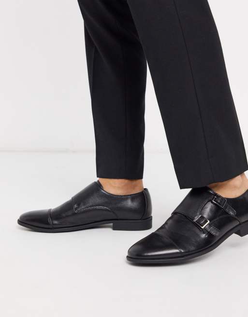 ASOS DESIGN – Monkschuhe aus schwarzem Kunstleder mit Prägung