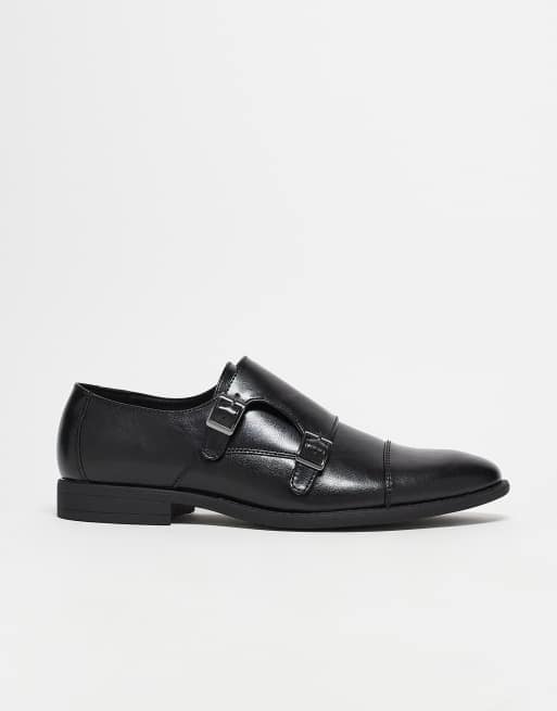 ASOS DESIGN – Monkschuhe aus schwarzem Kunstleder mit Prägung