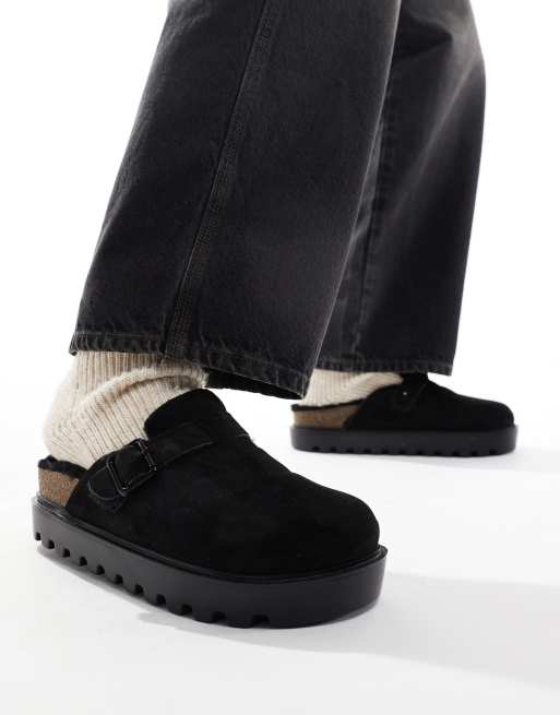 ASOS DESIGN – Mule-Clogs in Schwarz mit Futter aus Kunstpelz