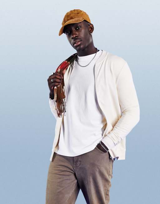 ASOS DESIGN – Muskel-Bomberjacke aus Jersey in Beige