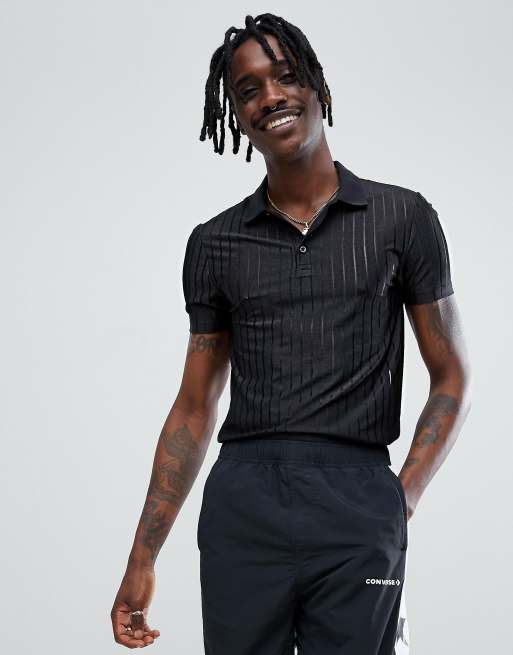 ASOS DESIGN – Muskel-Polohemd aus transparentem Netz-Rippstrick