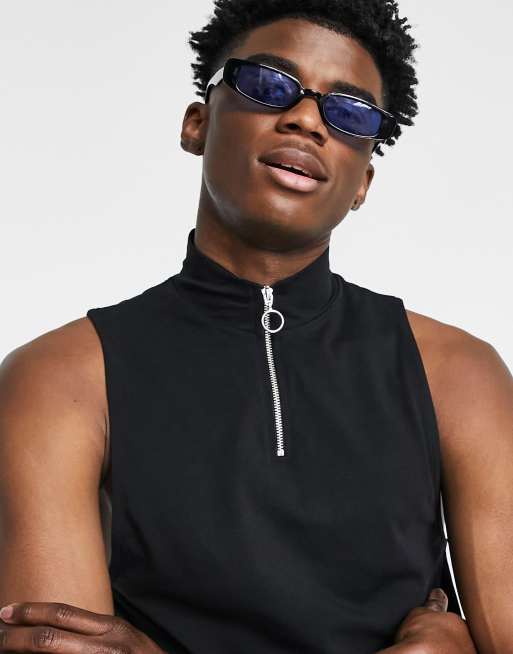ASOS DESIGN – Muskel-Trägertop mit Stehkragen und Reißverschluss in Schwarz, Kombiteil
