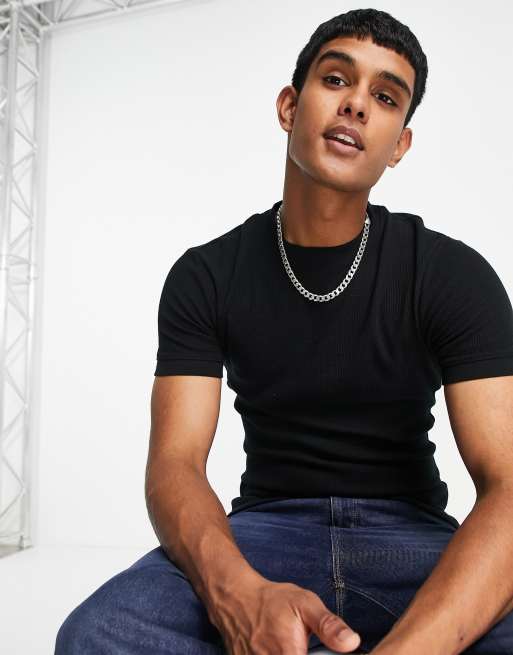 ASOS DESIGN – Muskelshirt in Schwarz mit Waffelstruktur