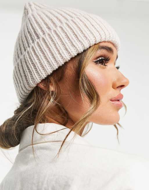 ASOS DESIGN – Mütze aus Lammwolle in Winterweiß