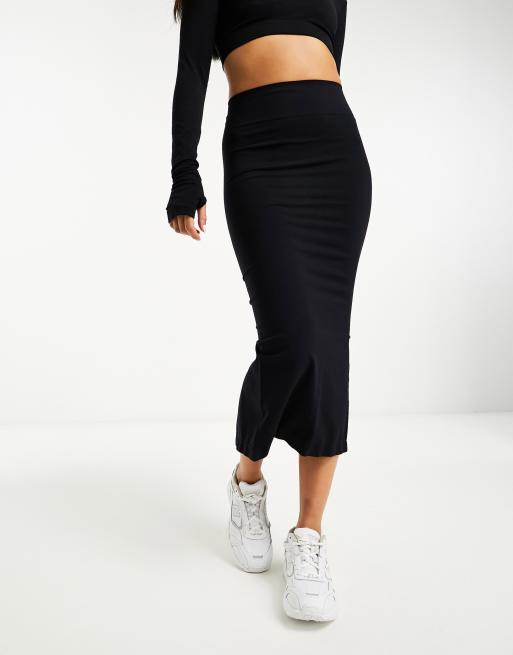 ASOS DESIGN – Nahtloser, figurformender Midi-Schlauchrock in Schwarz, Kombiteil
