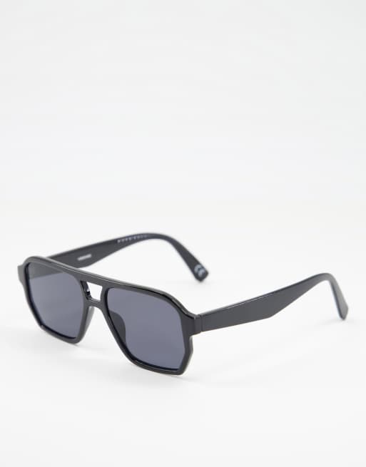ASOS DESIGN – Navigator-Sonnenbrille in Schwarz mit rauchschwarzen Gläsern