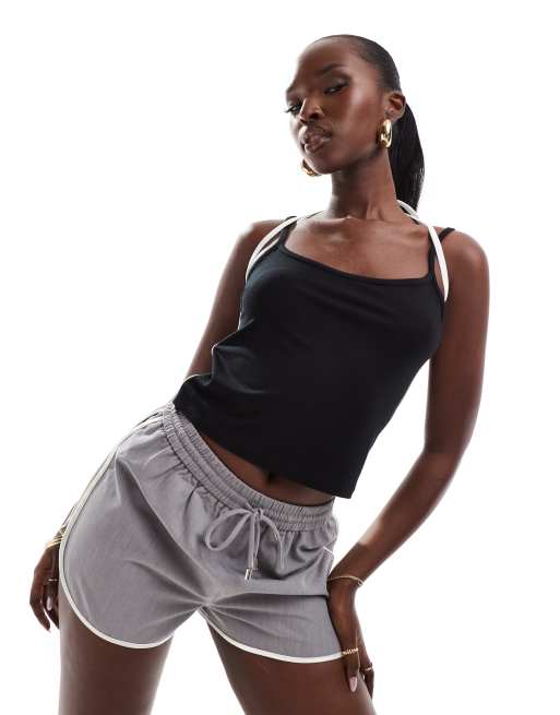 ASOS DESIGN – Neckholder-Oberteil in Schwarz mit Riemchenträgern und farblich abgesetzter Einfassung
