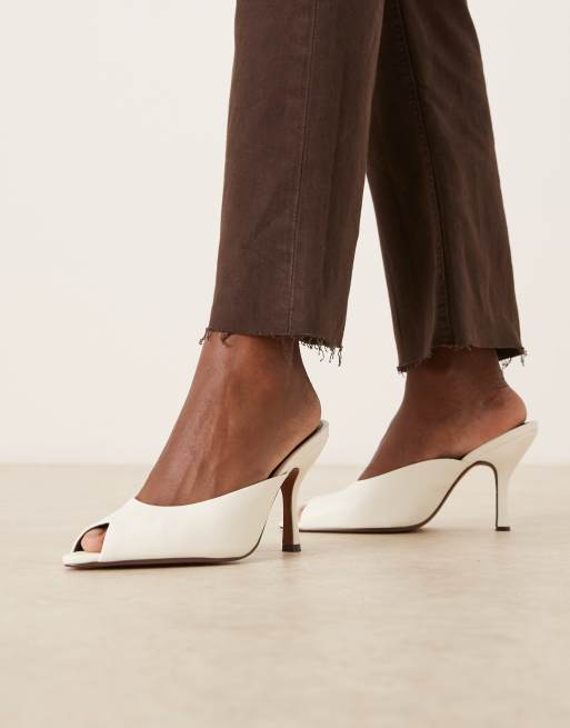 ASOS DESIGN – Nobu – Peeptoe-Mules in Wollweiß mit hohem Absatz