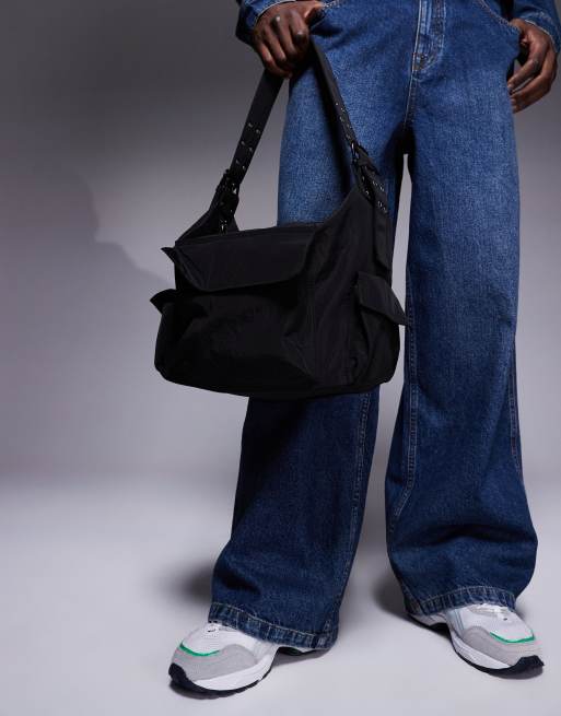 ASOS DESIGN – Nylon-Tragetasche in Schwarz mit Schnallendetail am Gurt