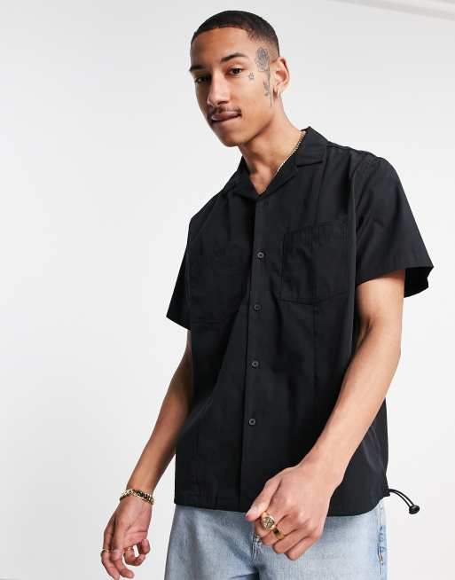 ASOS DESIGN – Nylonhemd mit Zugschnur im Saum in Schwarz