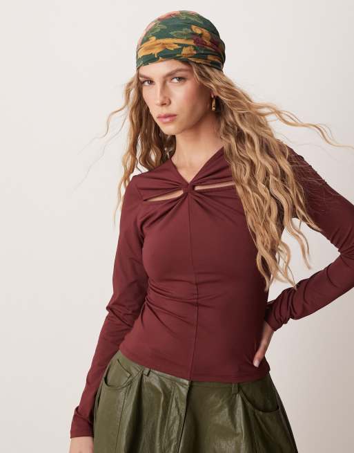 ASOS DESIGN – Oberteil aus Polyamid in Burgunderrot mit Knotendetail