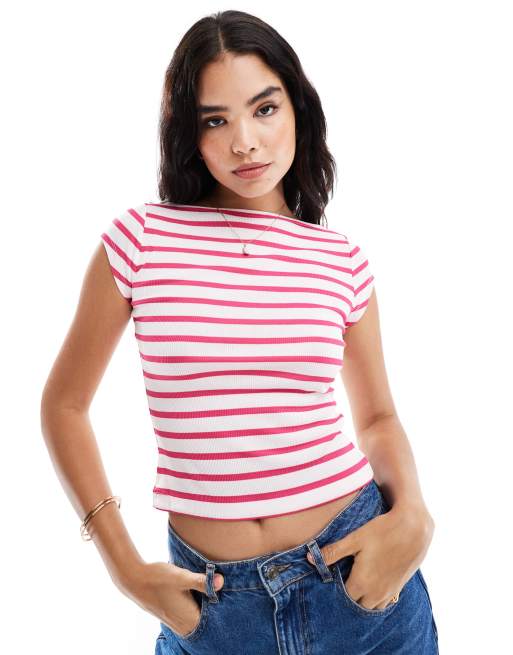 ASOS DESIGN – Oberteil in Rosa gestreift mit Schlitzausschnitt