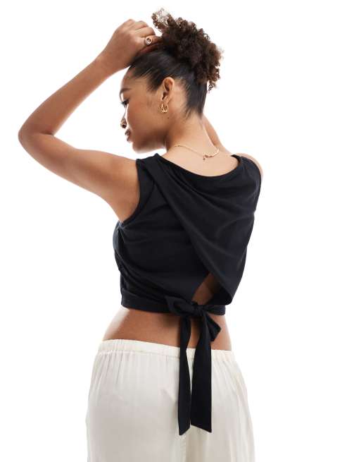 ASOS DESIGN – Oberteil in Schwarz mit U-Boot-Ausschnitt und gebundener Rückseite