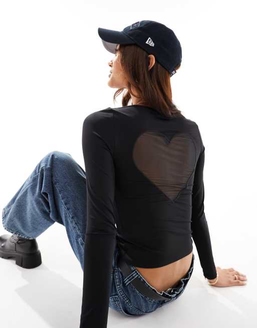 ASOS DESIGN – Oberteil in Schwarz mit U-Boot-Ausschnitt und herzförmigem Rückenausschnitt