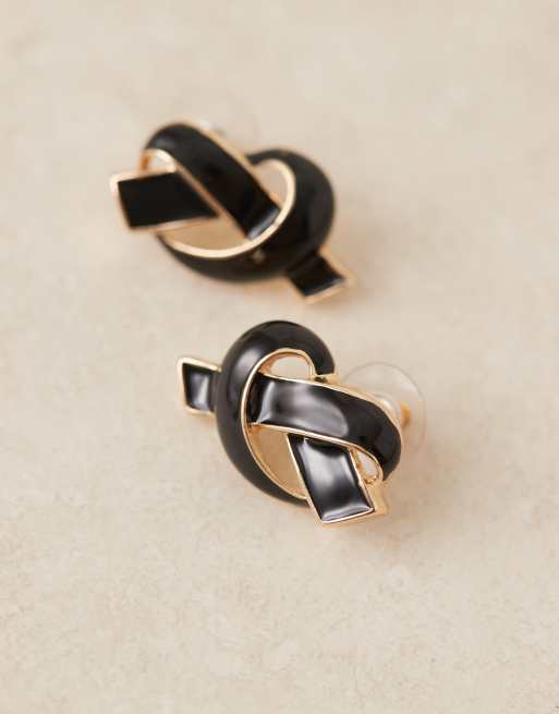 ASOS DESIGN – Ohrstecker aus schwarzer Emaille mit schlichtem Knotendesign