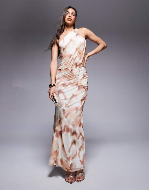 ASOS DESIGN – One-Shoulder-Maxikleid mit Printmuster und gerafftem Detail