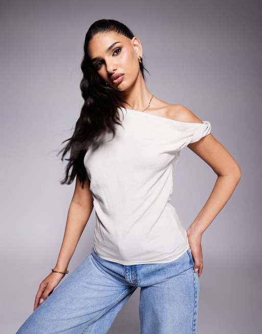 ASOS DESIGN – One-Shoulder-Oberteil in Leinenoptik mit Twist-Detail