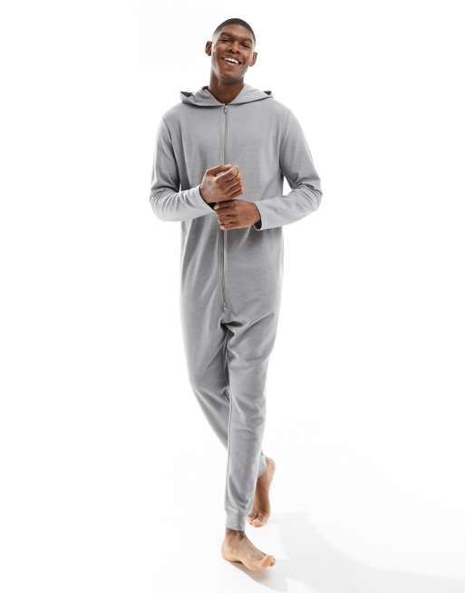 ASOS DESIGN – Onesie mit Waffelstruktur in Grau meliert