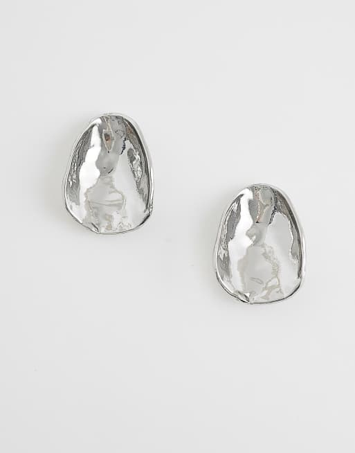 ASOS DESIGN – Ovale Ohrstecker in Silberoptik mit abgerundetem, gehämmertem Design