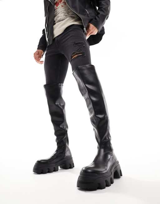 ASOS DESIGN – Overknee-Stiefel in Schwarz mit dicker Sohle